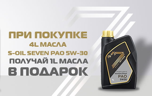 Для партнеров и клиентов компании Авто Оптимал в сентябре 2018 года действует акция 4+1 при покупке синтетического моторного масла S-OIL SEVEN PAO 5W30.
